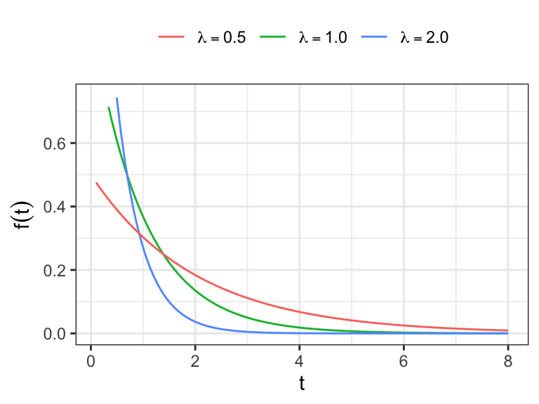 - rate \(\lambda >0\) (scale \(1/\lambda\))