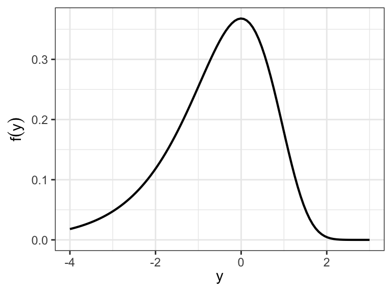 A parametric location-scale model for a random variable \(Y\) is a distribution with pdf of the form \[ f(y) = \frac{1}{b}\,\,f_0\bigg(\frac{y-u}{b}\bigg)\;\;-\infty<y<\infty \]