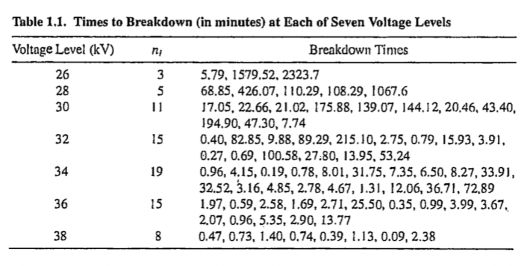- Nelson (1972) studied electrical insulating fluid under constant voltage stress.