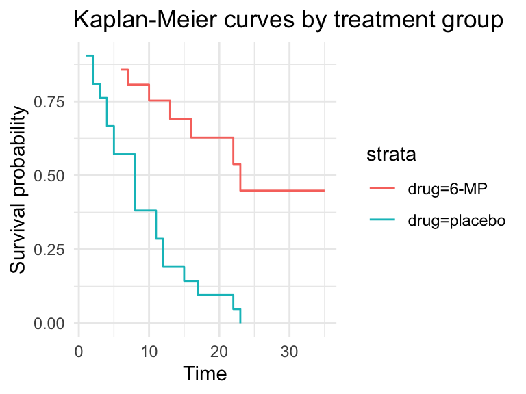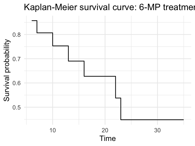 title = "Kaplan-Meier survival curve: 6-MP treatment") +